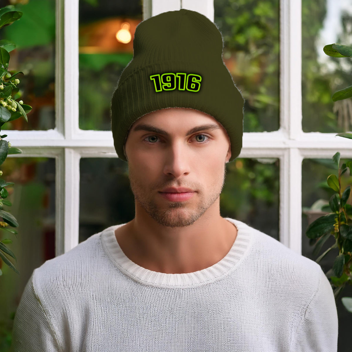 1916 Year Cuffed Beanie (Olive)